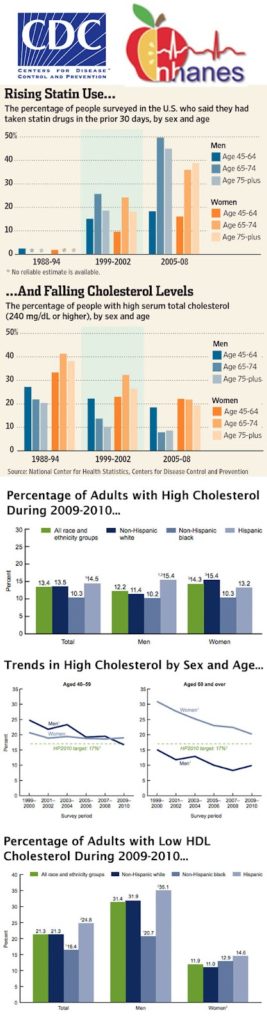 Although the CDC does study the use of statin drugs by adults and breaks this down by sex and age (see top chart in the infographic), the CDC’s analysis that is highlighted in AZ’s blog post is based “only on measured cholesterol and does not take into account whether medications are taken.”