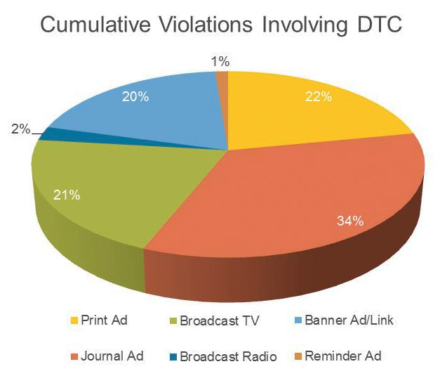 This [analysis] represents a look-back at all of the letters in the database going back through 2004 to present and compares the top violation categories – Risk Information (either omitted or insufficient), Superiority Claim, Unsubstantiated Claim, Broadening of Indication, Promotion of an Unapproved Use or Promotion of an Unapproved Drug.