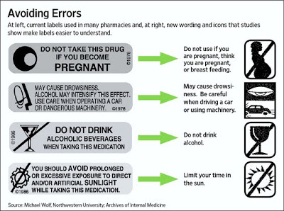 Michael Wolf, an associate professor at Northwestern University’s Feinberg School of Medicine who serves on an FDA risk-communication advisory panel, says in recent studies, more than half of adults misunderstood one or more common prescription warnings and precautions. In one study Dr. Wolf and colleagues found that patients better understood simple, explicit language on warning labels — like “use only on your skin” instead of “for external use only” — and those with lower literacy skills also benefited from picture icons, such as a sun with a black bar across with words, “limit your time in the sun.”