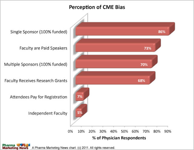 Of course, some CME programs are not funded in any way by the drug industry and is paid for entirely from registration fees paid by physicians (the Institute of Medicine estimates that physicians, on average, spent slightly more than $1400 per year for CME in 2007).