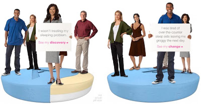 This new online Ambien CR promotion was no doubt developed in response to a print ad by Lunesta, which compared a wide-awake woman who took Ambien to a pleasantly-asleep woman who took Lunesta: