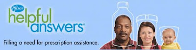 Well, there is a program, which you can find on Pfizer.com here. [The image on the left is in the header of Pfizer’s “helpful answers” Web site. I am a little confused by this image, which outlines people’s heads with medicine bottles, Rx pill containers, and cups. Why was that necessary?]