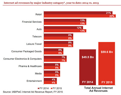 According to FiercePharma Marketing, “Digital ad spending last year was just shy of $60 billion, with pharma accounting for about $3 billion of that, according to the Interactive Advertising Bureau’s annual ad revenue report prepared by PricewaterhouseCoopers” (read “Mobile Ad Spending Up, But Pharma’s Share Remains Small“). Here’s the data from IAB/PWC from which this conclusion was drawn: