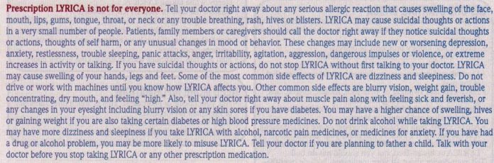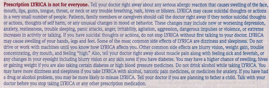 But how easy is it to read the fair balance? Here’s an enlarged view of that section of the Lyrica ad above: