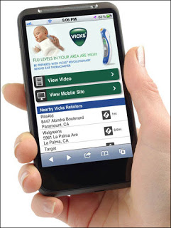 There are no pharma apps that I know of that directly help to sell drugs or vaccines. I mention vaccines because I just found out about a P&G “Vicks” branded mobile app/device combination that could be a model for improving the sale of vaccines, especially for the flu. It’s a mobile advertising campaign for a behind-the-ear thermometer by Vicks that is “designed to display the ad only in areas where there is a high incidence of the flu and only to mothers, the primary purchasers of thermometers” (see “Using Google Data on Smartphones to Target Consumers for Ads“).