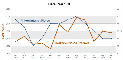 The percent of “non-Internet” pieces varies from 72% to 80%, which means the % of Internet pieces is in the 20-28% range (I would say the average was 24% for the year).