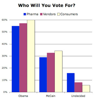 It’s official! If the presidential election were held today, 55 percent of employees of pharmaceutical companies said they would vote for Mr. Obama and 28 percent said they would vote for Mr. McCain.