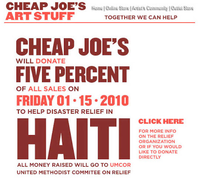 In contrast, Cheap Joe’s Art Supplies — where I sometimes shop — pledged to donate 5% of the sales it made last Friday. Cheap Joe sent me the following notice by email last week:
