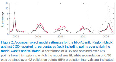Some time ago, Google decided that search trends can be used to track diseases such as influenza. It published results of a study of its data in a white paper: “Detecting influenza epidemics using search engine query data” (find it here). They found a strong correlation between search data and CDC data as shown in the chart below: