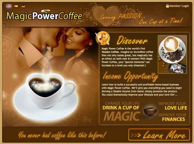 “Imagine an incredible coffee that not only tastes great,” says the Magic Coffee marketing blurb, “but magically has an effect on both men & women! With Magic Power Coffee, your ‘special moments’ can increase to a level you only dreamed.”†