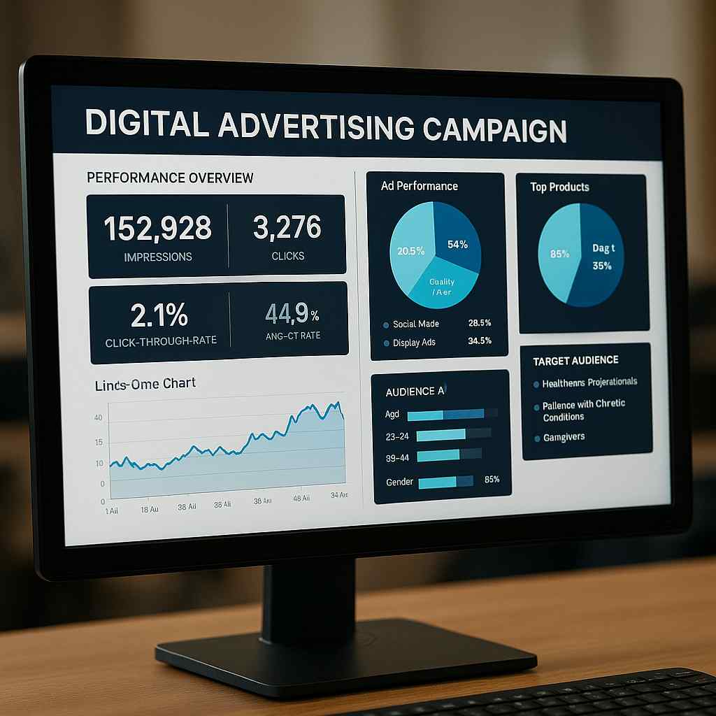 Dashboard overview of a pharmaceutical digital advertising campaign