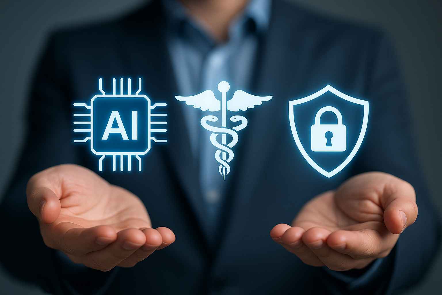 Digital image showing AI tech balancing patient privacy in pharma marketing