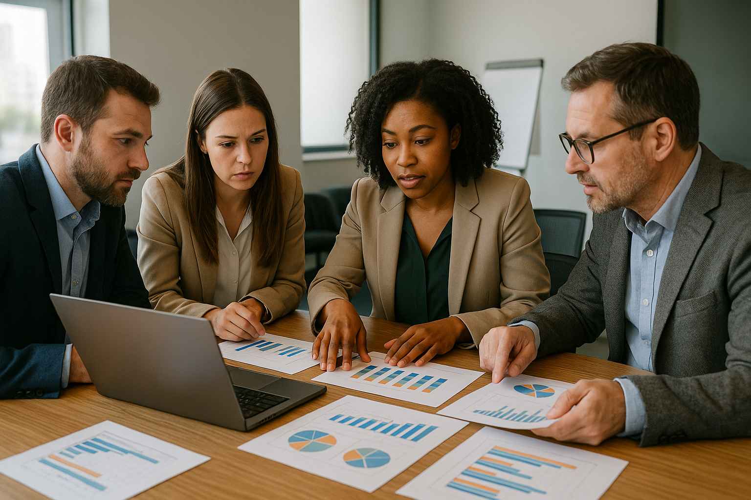 Marketers reviewing strategy insights from Pharma Marketing Network