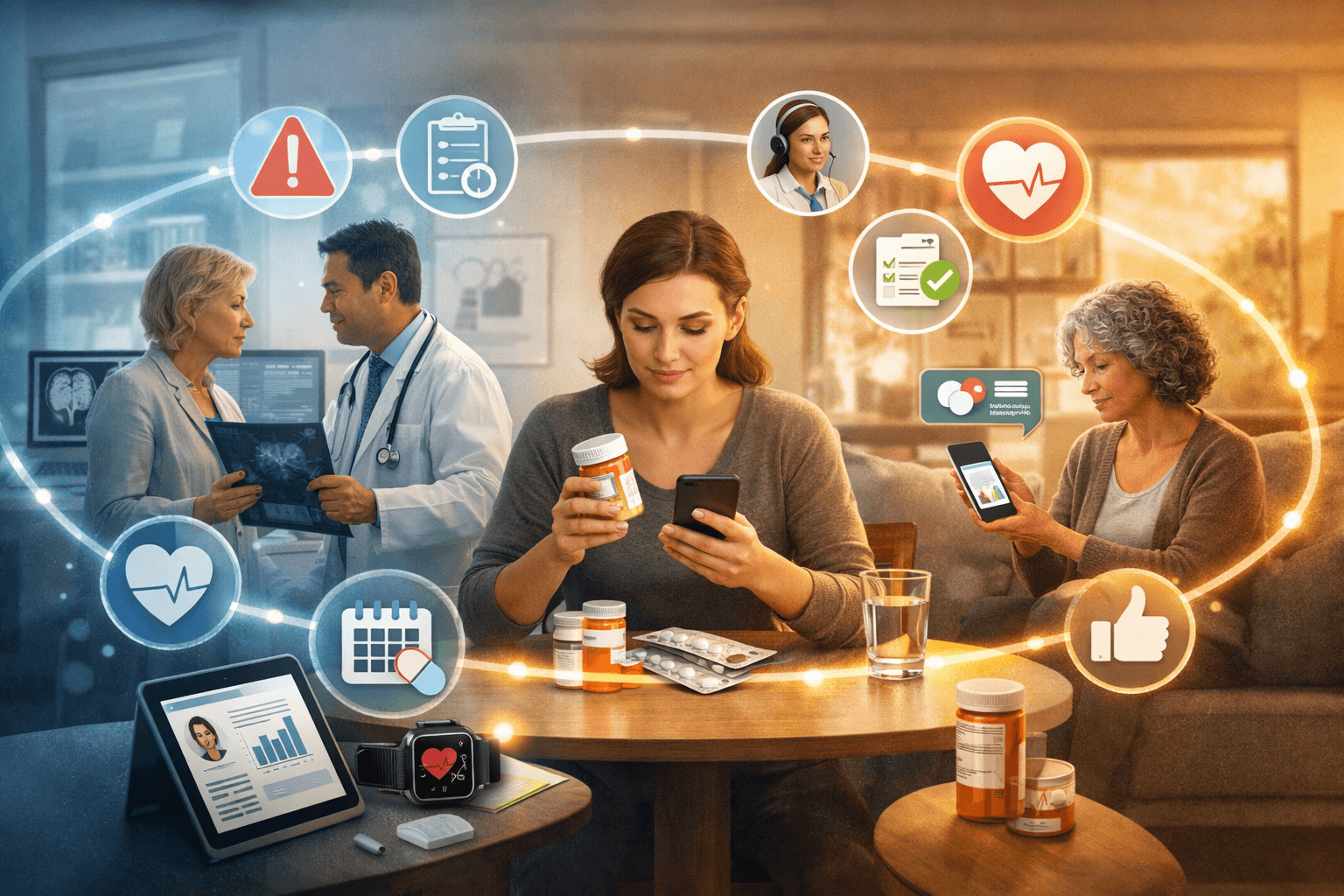Maintaining adherence over time is a major challenge. Context-aware strategies here use behavior signals—such as refill delays or missed log-ins—to trigger supportive nudges or tailored coaching messages. The goal is to reduce friction, not just remind.